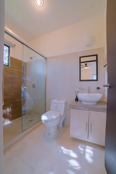 3 baños completos con cancel de vidrio templado, que combinan funcionalidad y elegancia.
