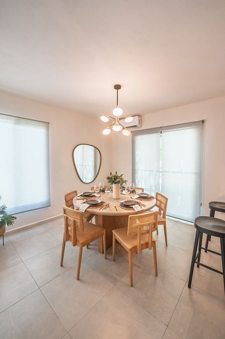 Comedor luminoso con ventanal que conecta directamente con el jardín lateral, perfecto para reuniones y momentos de tranquilidad.