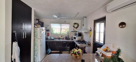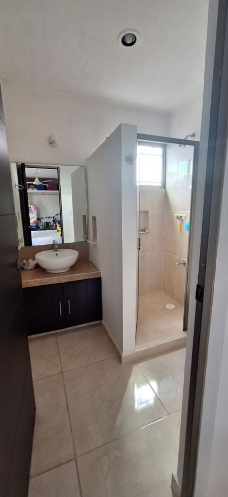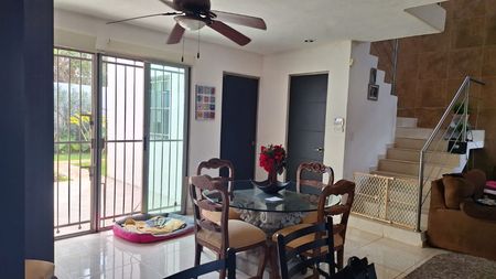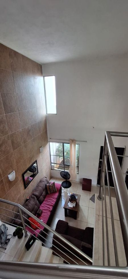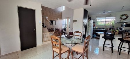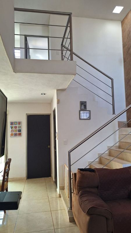 la casa cuenta con dos niveles , una totalidad de tres habitaciones cada una con baño, la principal con baño vestidor, una habitación se encuentra en planta baja y dos en planta alta, la escalera cuenta con barandal de acero inoxidable , medio baño en planta baja, cuenta con una cocina muy amplia con cocina integral, pasillo de acceso y puerta de servicio en área de cocina, la casa se encuentra en