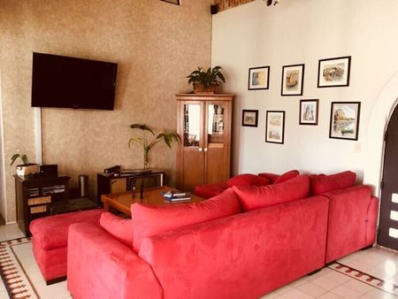 villa encanto, bóveda catalana,mosaicos,herrería,residencia 1 planta y en planta alta un loft, hermosa casa con estancia doble altura , terraza, cocina con barra desayunador, 2 alacenas , área de multi servicios, estudio , terraza abierta en planta alta , baño completo con tina en recamara recamara 1 y recamara 2, con baño completo , recamara principal con baño completo tina y walking closet. Cuenta con departamento estudio 93 mts, ingreso independiente, estancia y comedor, Cocina, baño completo, closet de blancos y recamara con closet full, alberca, jardín, estacionamiento 3 autos, régimen de condominio.