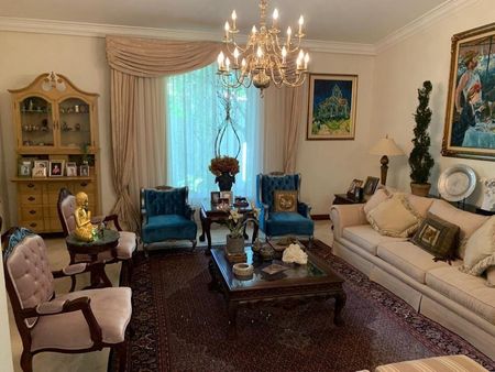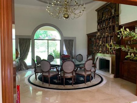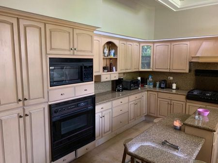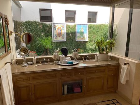 Acabados de lujo, piso crema marfil español. Todas las cubiertas de granito y toda la carpintería de caoba. Cochera techada para 3 carros