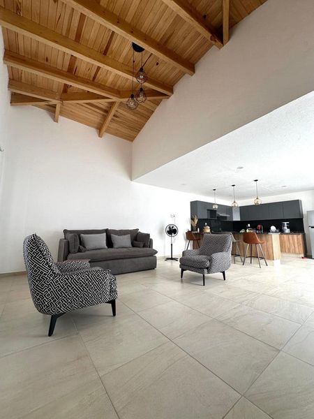 Amplia sala y comedor con doble altura – Un ambiente luminoso y sofisticado.