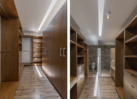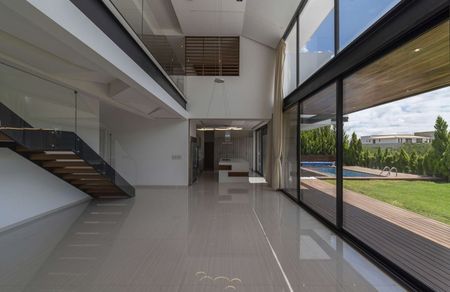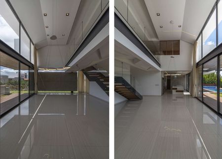 Modern style with luxury finishes in porcelain tiles, wood, bathrooms, lockers. Double height in living room and dining room, kitchen.