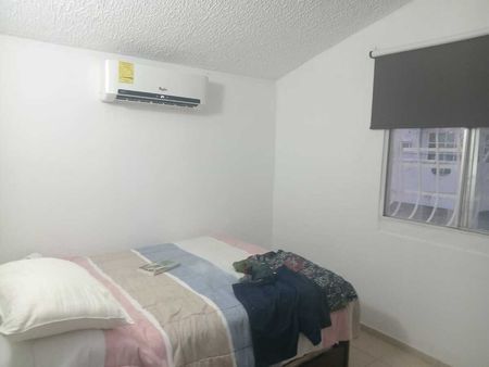 1 recámara,baño completo , cocina integral, espacio de sala comedor y área de servicio.