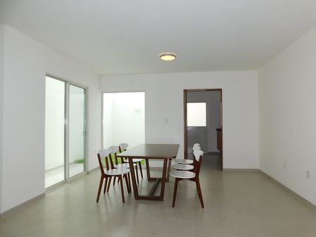 sala comedor, cocina, recamara con espacio para closet, 1 baño completo, patio de lavado, jardín y cochera para 2 autos.