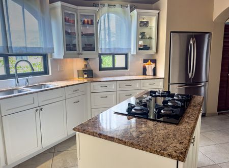 Encontrarás una amplia cocina donde todos los gabinetes son de cristal y están ambientados con luz interna, uno de ellos funciona como estante para vinos; hay también un horno empotrado, microondas Advantium y lavavajillas. Las barras de granito envuelven todo el espacio. Este espacio ha sido recientemente renovado y mejorado para una mayor comodidad.