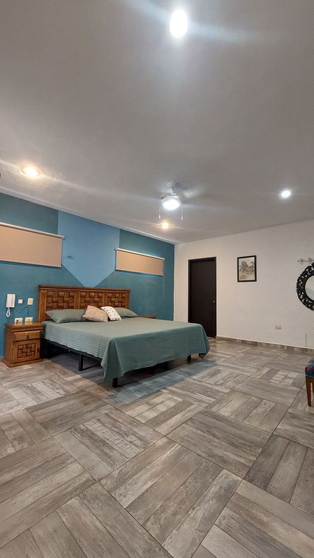 1 recámaras con balcón con película de privacidad tipo espejo y clóset tipo pasillo. 1 baño completo con videt (frente a esta.)