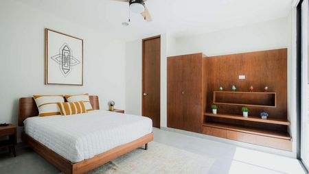 Recámara secundaria con área para closet y baño completo