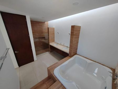 Recámara principal con amplio closet vestidor y baño principal con tina, doble lavado
