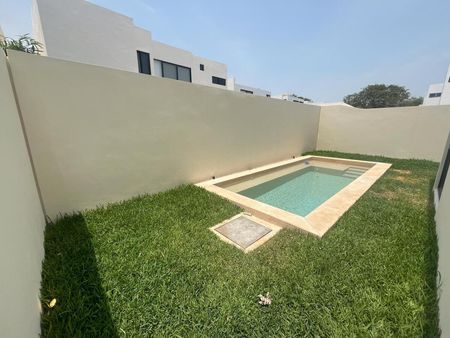 • Equipamiento: Carpinterías en cocina superior e inferior y cubierta de granito, closet en todas las récamaras, jardín y sistema de riego, piscina con iluminación, parrilla y campana, carpinterías bajo lavabo, preparación para suavizador y filtro de agua en piscina.