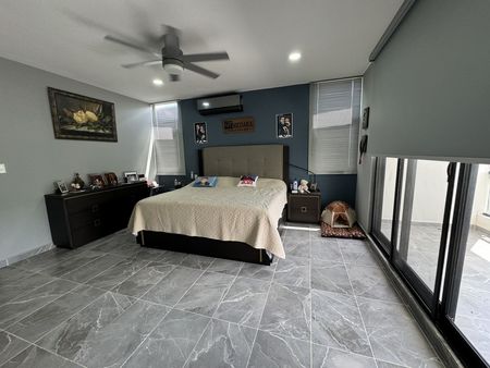 Recámara principal con balcón, vista a la piscina, baño doble y vestidor doble