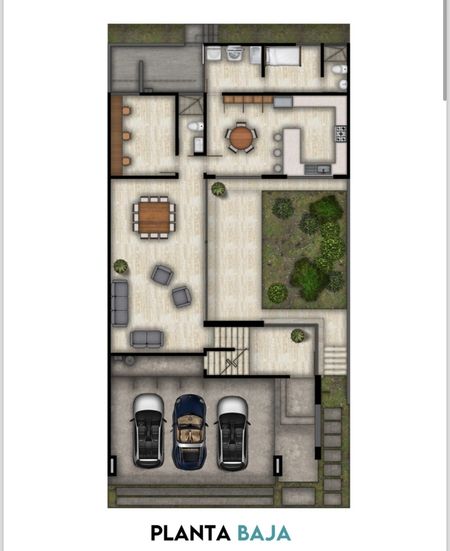 Vestíbulo: Espacio con doble altura, que comunica a los diferentes niveles y cuenta con vista a la terraza y jardín en la sala-comedor también tienen vista a la terraza, la cocina integral la cual esta hecha con melamina texturizada y su cubierta en granito, tiene un amplio espacio para lavavajillas de un lado de la cocina se encuentra un estudio con baño completo, el cual se puede utilizar para una cuarta habitación, la casa cuenta con una bodega y un cuarto de tendido con espacio para la recamara del personal.