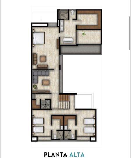 Planta alta: Hall de TV con vista a la terraza/jardín, además de 3 recamaras todas con baño completo, la principal cuenta con tina y un pozo de luz que le da un toque mágico. Además tiene su zinc, para evitar subir líquidos por las escaleras.