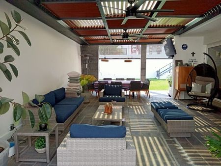 Garage para 4 autos y frente a la casa área de estacionamiento común para visitas.