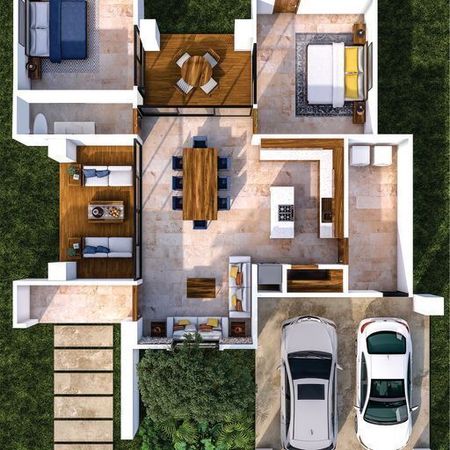 • Cochera techada hasta para 2 autos con concreto estampado.