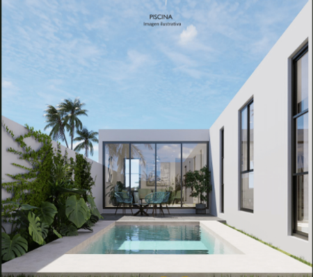 Casa en privada residencial al norte de Mérida, en una excelente zona con alta plusvalía debido a su cercanía con puntos importantes como hospitales, plazas comerciales, escuelas, universidades y las carreteras que conectan con las playas de Yucatán y zonas turísticas. Esta casa de una sola planta cuenta con piscina