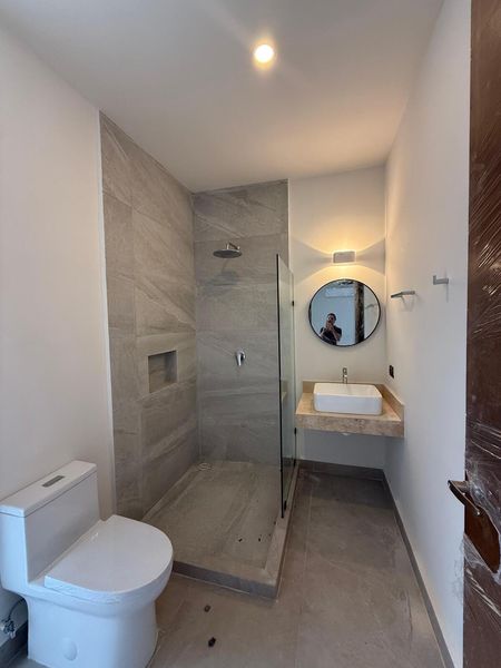 Recámara principal con amplio clóset vestidor y baño privado con doble lavabo