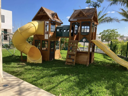 Amenidades: Vialidades asfálticas, un solo sentido con tres retornos en concreto pulido y banquetas en ambos lados, barda perimetral, pista de jogging de aproximadamente 900 m de distancia, 30 cajones de estacionamiento distribuidos en las áreas verdes de la privada, áreas de lectura al aire libre, distribuidas en la privada, parque con juegos infantiles, terraza techada con baño para reuniones aproximadamente de 40 personas, cancha de fútbol 5, media cancha de básquetbol, áreas verdes y parques para que vivas momentos inolvidables junto a tu familia, caseta de vigilancia con acceso controlado, baño especial para caseta de vigilancia y/o servicio de mantenimiento