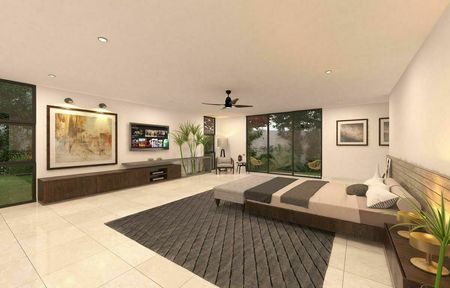 Recámara principal con closet vestidor, baño completo con doble lavamanos.