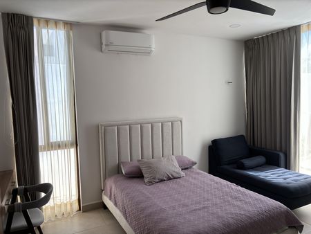 Tres aires acondicionados inverter marca Mirage de 18 mil BTU en recámaras, 1 aire acondicionado inverter marca Panasonic de 24 mil BTU y 1 aire acondicionado inverter marca Panasonic de 12 mil BTU (estos dos últimos en espacio sala-comedor-cocina).