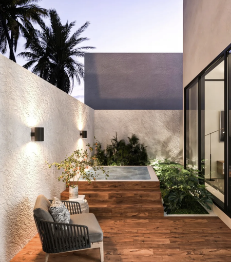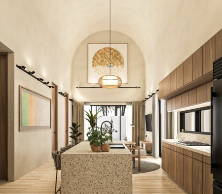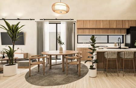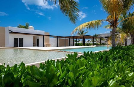 La residencia CHELEM se diferencia de las demás por un diseño arquitectónico contemporáneo con toques mediterráneos se distingue por su estilo Wabi Sabi con dobles alturas, pronunciadas curvas, acabados en chukum, piedra natural y amplias jardineras que dan vida. Un estilo único a la fachada e interiores, ademas de ser un Smart Home controlada desde la app de tu teléfono.