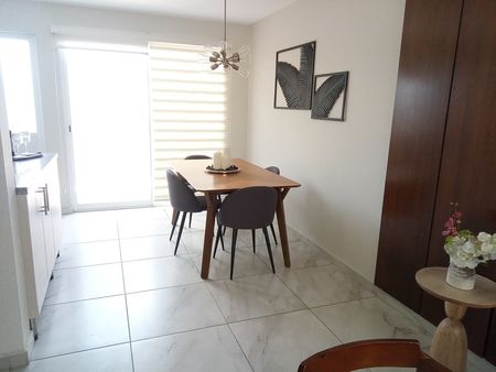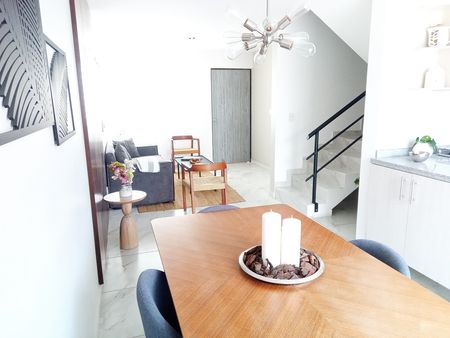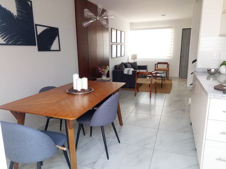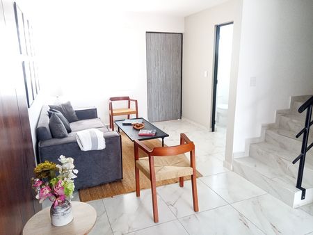 Casa en venta cuenta con espacio de sala, comedor, cocina integral, patio trasero, medio baño, cochera para 2 autos.