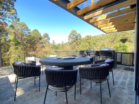 Con todas las amenidades que Rancho Avándaro te ofrece, como piscina, gym, campo de golf, centro ecuestre, entre otros, goza al máximo de tus días de descanso en una cómoda y moderna casa vacacional en el hermoso entorno de Valle de Bravo. ( * costo extra de la membresía)