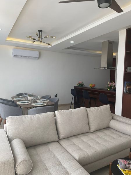 Recámara principal con closet vestidor y baño completo.