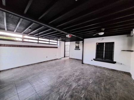 Cochera para 2 carros, enlosetada, totalmente techada y con ventiladores, así como cuarto/bodega en la parte posterior.