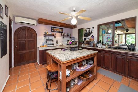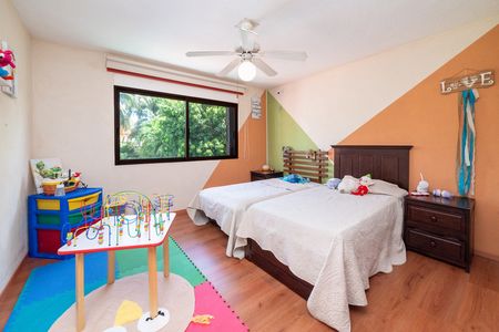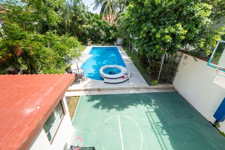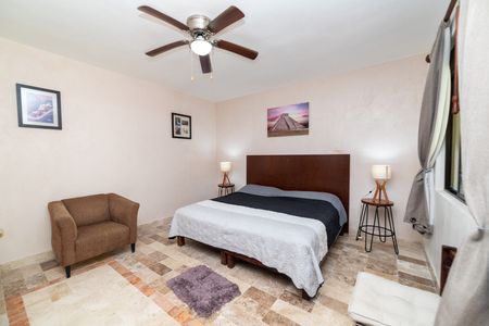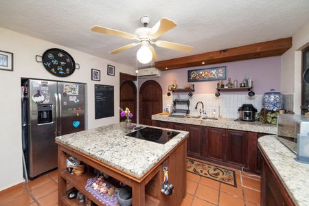 La propiedad destaca por sus amplios espacios interiores con sala y comedor en desnivel, cocina integral equipada con isla y barra, terraza climatizada adaptada como bar estilo irlandés, y un encantador jardín con alberca, cancha de basquetbol y frutales que añaden un toque natural al estilo de vida. Además, cuenta con un cuarto de huéspedes independiente con baño privado, ideal para recibir visitas con privacidad.