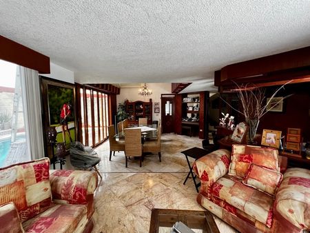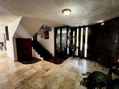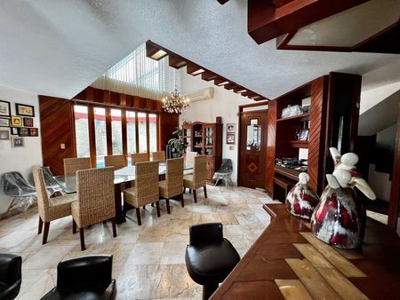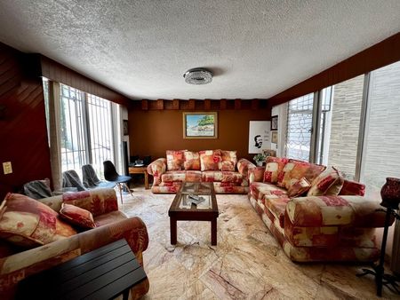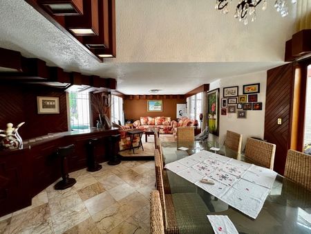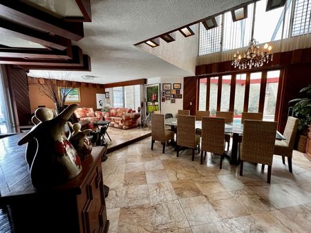 La casa en planta baja cuenta con patio, estacionamiento para dos automóviles, amplio comedor con sala, estudio, sala de televisión, un baño completo, cocina con desayunador, una hermosa alberca techada y un amplio patio posterior.