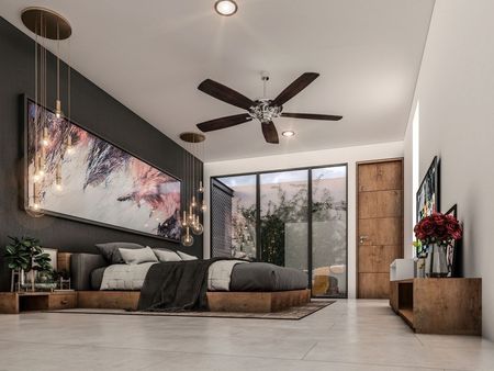 *Recamara 1 con baño completo y vista a la terraza y alberca (baño con acceso a piscina)