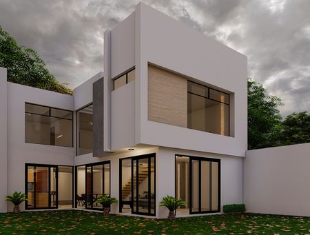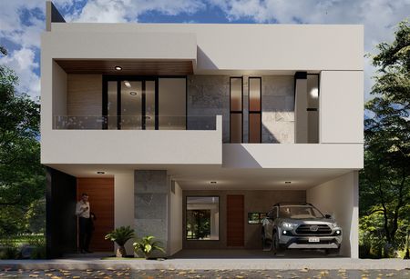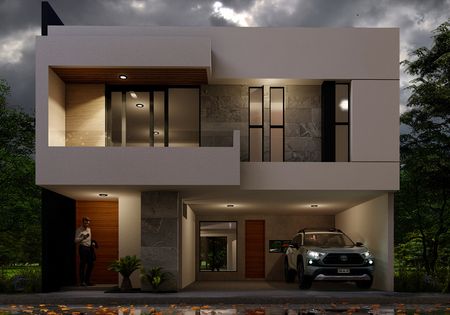Planta alta: Recamara principal con baño completo y vestidor, dos recamaras con baño completo y closet, vestidor con belicera, cajonera, entrepañera zapateras y tubo, espacio para cuarto de servicio, Hall de TV. Roof Top.