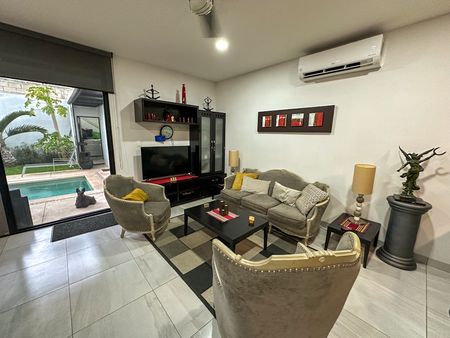 3 aires acondicionados: 1 en planta baja y uno en cada habitación.