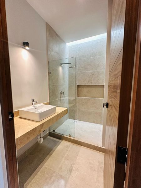 Cristales templados en baños, portón eléctrico y closets de madera en baños