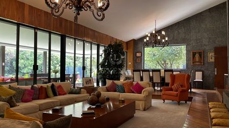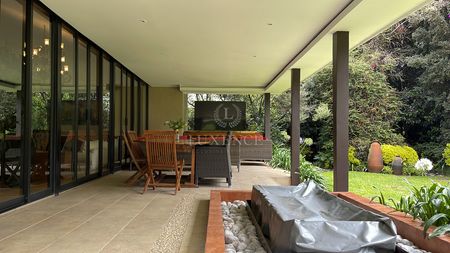 Desde su acceso, la propiedad destaca por su diseño arquitectónico sobrio y elegante. La sala principal, con chimenea, se integra perfectamente con un comedor de gran tamaño ideal para recibir invitados. La cocina, los espacios sociales y el despacho están cuidadosamente distribuidos para aprovechar al máximo la amplitud de la casa.