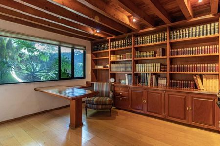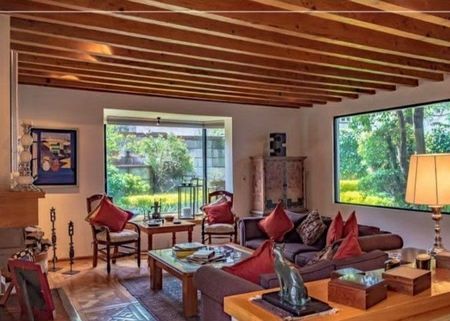 Disfruta de esta casa con magnífico proyecto y precioso jardín. Tiene excelentes espacios y al mismo tiempo muy acogedores. Cuenta con vestíbulo, preciosa sala y comedor con vista y salida al jardín, cocina, desayunador, medio baño, sala de estar, 3 recámaras cada una con baño y dos con vestidor, preciosa terraza , 7 estacionamientos, 2 cuartos de servicio y lavandería.