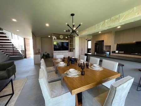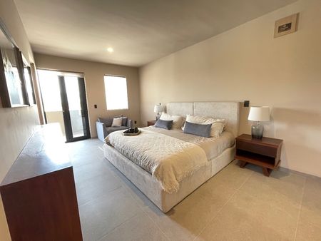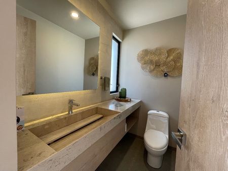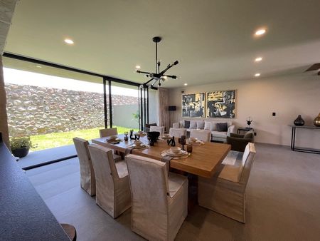 Este espectacular modelo CIELO, cuenta en planta baja garaje techado 3 vehículos, baño de visitas, sala , sala tv con baño , comedor , cocina equipada, jardín , terraza con bar, área de lavado, cuarto de servicio con baño. En planta alta, recámara principal con vestidor y baño, dos recámaras con baño y vestidor cada una . Terraza en recámaras.