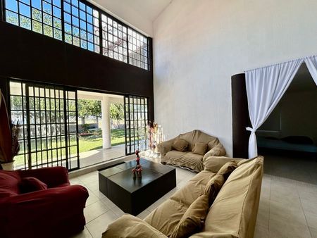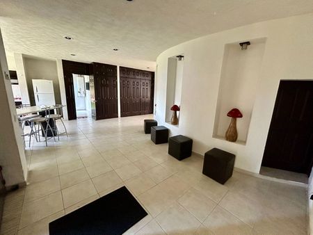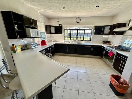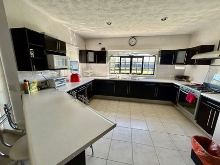 PB: AMPLIO COMEDOR Y SALA A DOBLE ALTURA, COCINA INTEGRAL CON BARRA DESAYUNADORA, AREA DE SERVICIO CON CUARTO DE SERVICIO Y BAÑO COMPLETO, RECAMARA EN PLANTA BAJA CON BAÑO COMPLETO, AREA DE JUEGOS Y MEDIO BAÑO. AMPLIA AREA DE TERRAZA CON BAÑOS PARA HOMBRES Y MUJERES Y VESTIDORES, BARRA CON TARJA PARA EVENTOS .