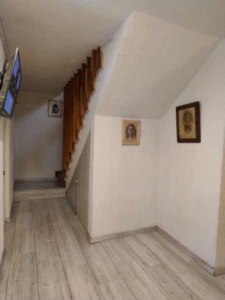 En la parte de atrás de la casa cuenta con un departamento independiente, con cuarto de tele y una recamara con vestidor y baño con tina.