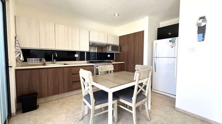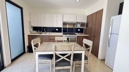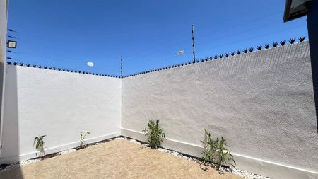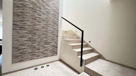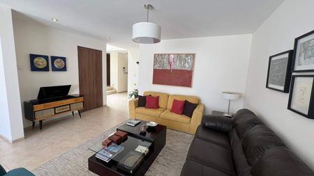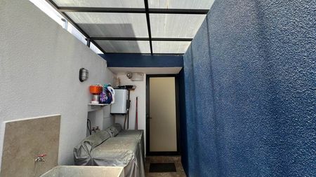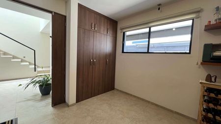 Planta baja: Recibidor en doble altura y estudio y/o recamara con closet, 1 baño completo, sala-comedor amplio, cocina integral con espacios para antecomedor, patio trasero, patio de lavado techado, cochera con portón eléctrico para 2 autos, bodega en cochera y bodega en sala.