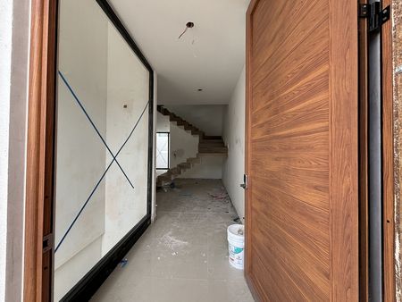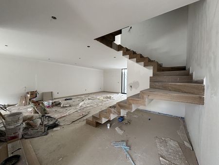 Planta Baja: Recibidor, sala comedor, cocina integral en concepto abierto con cubierta de granito, jardín, 1/2 baño para visitas, cuarto de lavado, cochera 2 autos.
