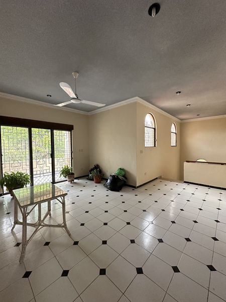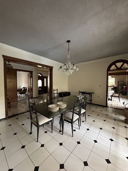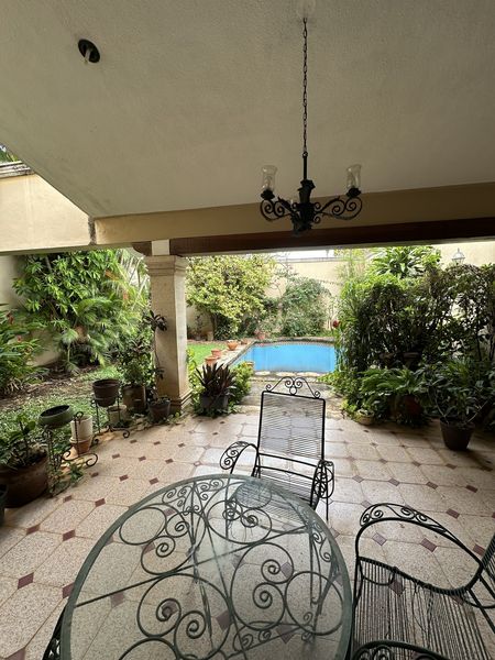 Área de sala privada y comedor que conecta ala terraza y área de jardín y piscina .