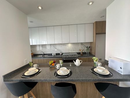 Cocina abierta y equipada con granito