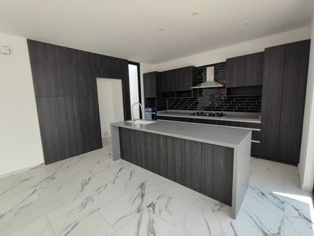 con Parrilla de gas de Cristal templado con 5 quemadores, Horno Eléctrico, Campana decorativa, Doble Tarja Cuadrada y Monomando Contemporáneo satinado con