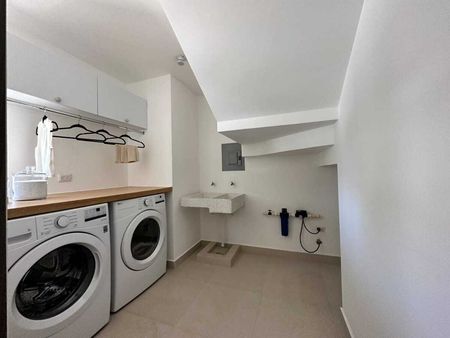En planta baja la casa cuenta con sala - comedor, cuarto de lavado, medio baño para visitas, cocina equipada y acceso al jardín.