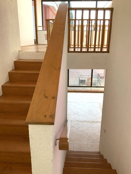El área intima esta en la planta alta de la casa, desde donde serás guiado por una escalera en madera con total iluminación, barandales en madera clara.
