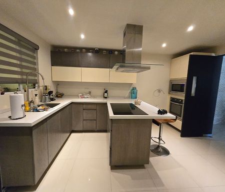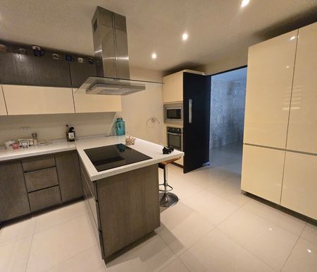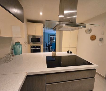 • Cocina integral equipada con cubierta de cuarzo, parrilla de inducción, torre de hornos y alacena.