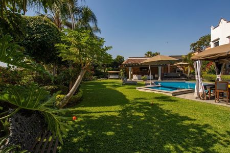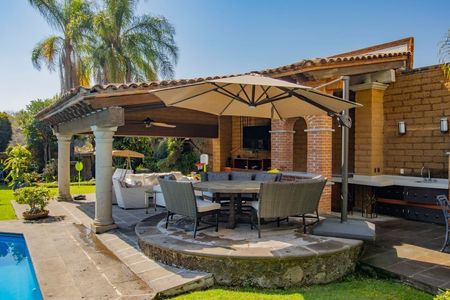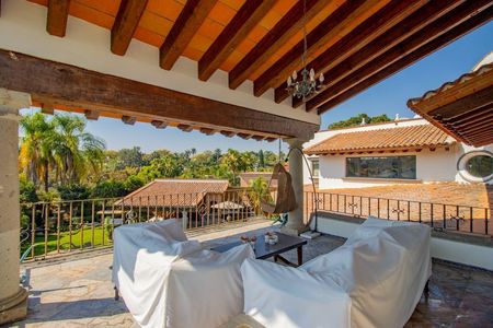 Bella casa en el mejor fraccionamiento de Cuernavaca con hermoso entorno arbolado. Campo de golf , casa club , restaurante. Casa totalmente privada, con vista a zona arbolada. Estilo colonial fino con mucho detalle tales como gualdras sólidas de madera ,bóvedas catalanas, piso santo Tomás macheteado, vigas completas de tamaño extra. Puertas de caoba, zoclos y baños con talavera de Puebla.