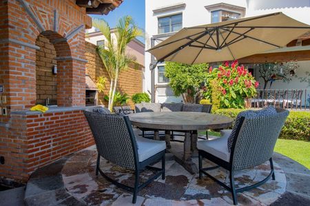 En planta baja ,1/2 baño de visitas , sala , comedor. En área de jardín se tiene baño para mujer y hombre , salón de juegos y tv con bar con baño completo. Jardín amplio con alberca y jacuzzi con sistema de calentador solar . Área de palapa con asador.